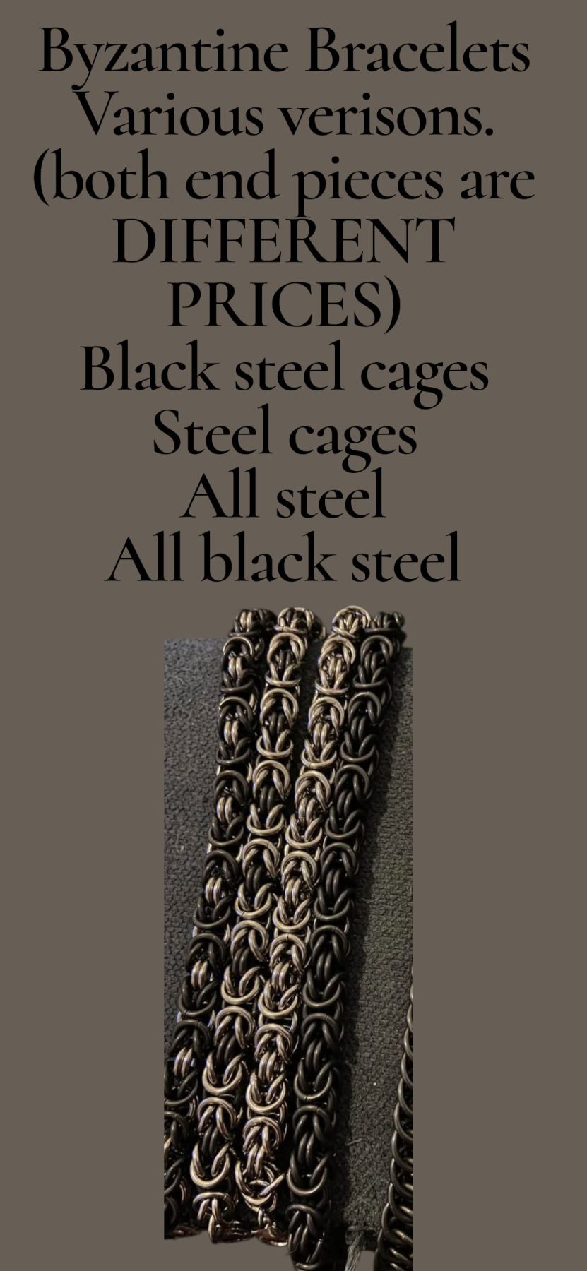 Cages can be interchanged for different materials or colors, please see “Titanium Byzantines” for prices of different prices