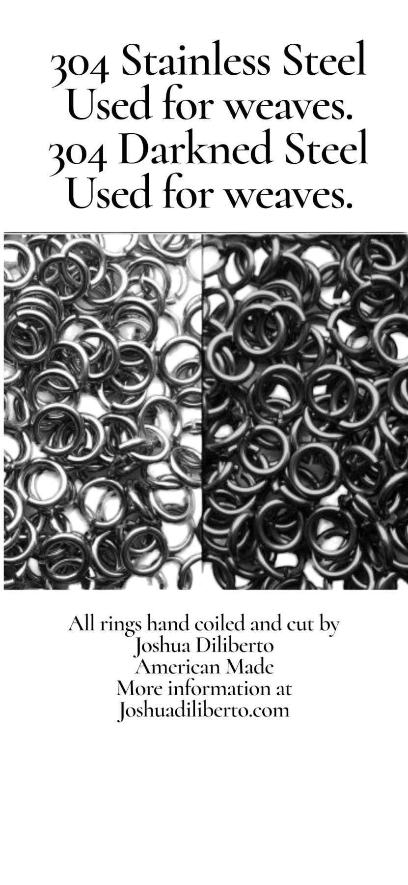 Hand woven with 304 grade stainless steel and titanium.