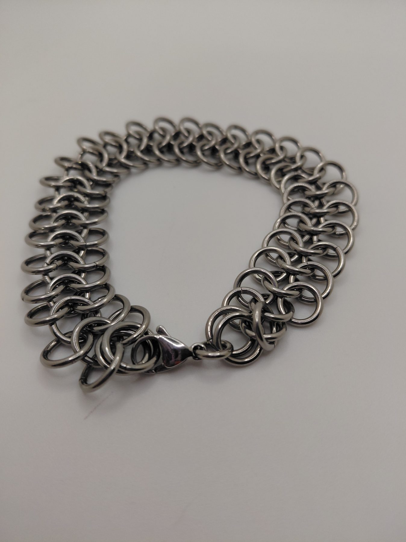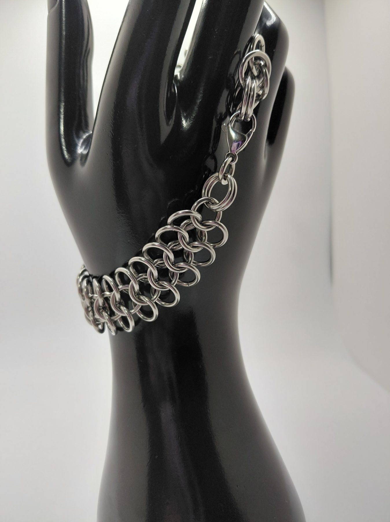 The Lobster claw allows for the bracelet to grasped anywhere on the weave. Allowing for variation in sizes.