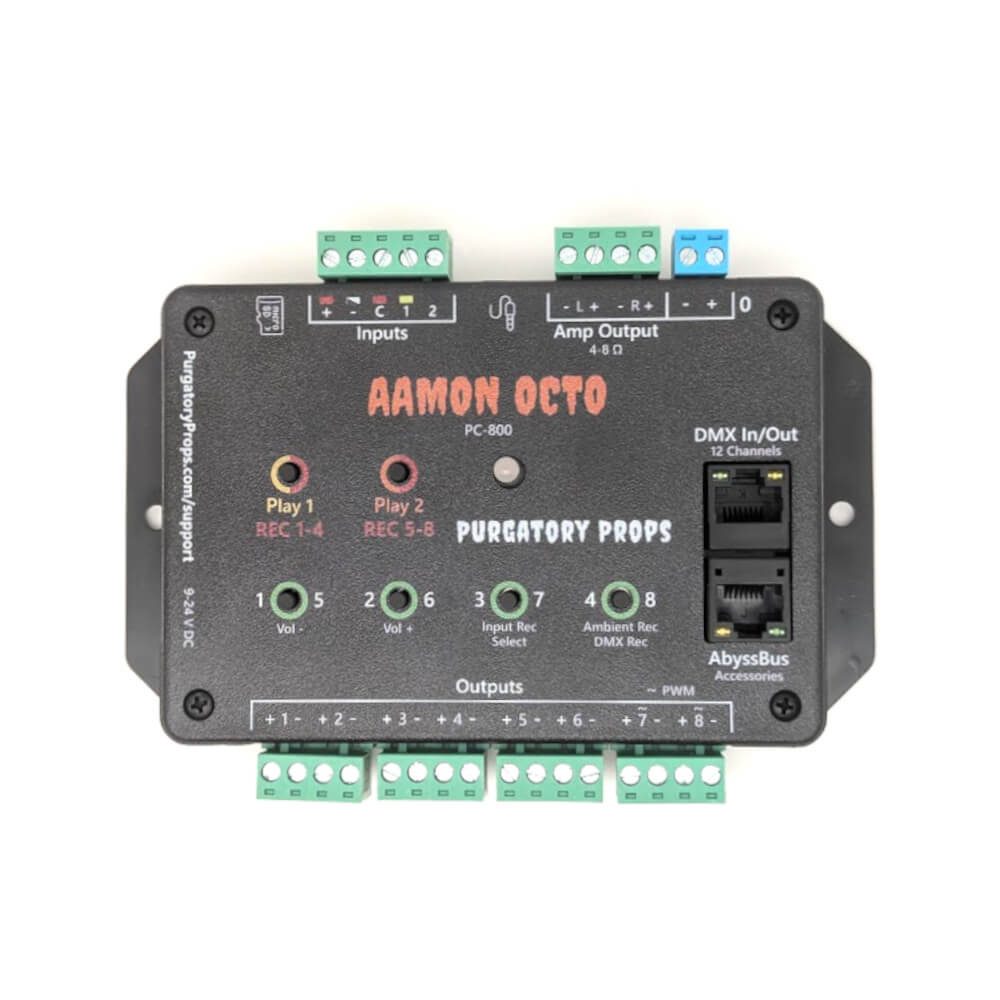 This 8-channel prop controller (with an extra output) allows you to easily program more complicated props, and allows you to add audio to your scares.