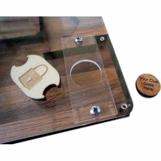 On the bottom of this piece is an engraved code, message, symbol(s), etc… which corresponds to another part of your escape room.