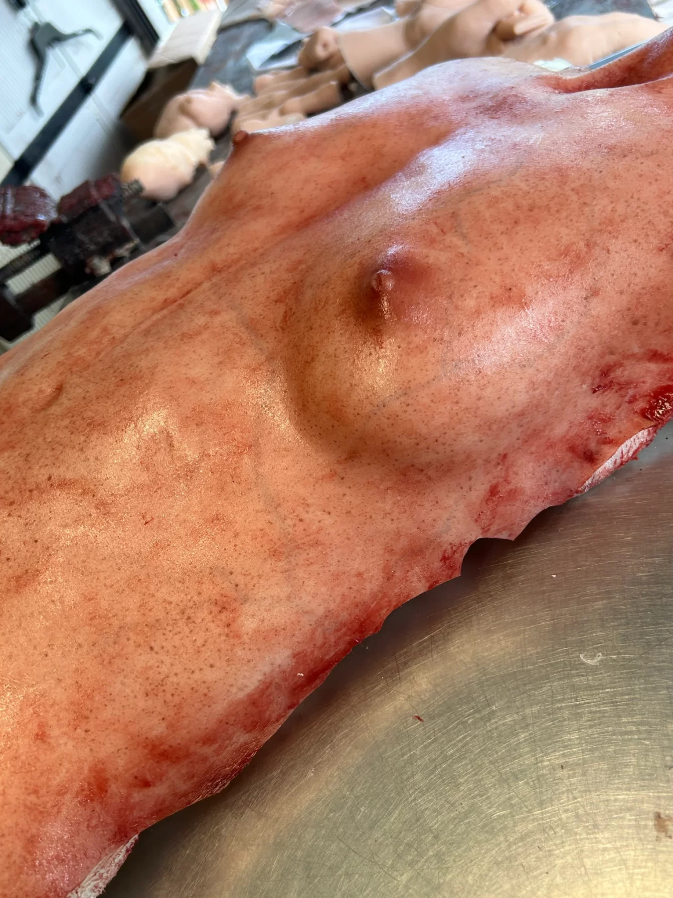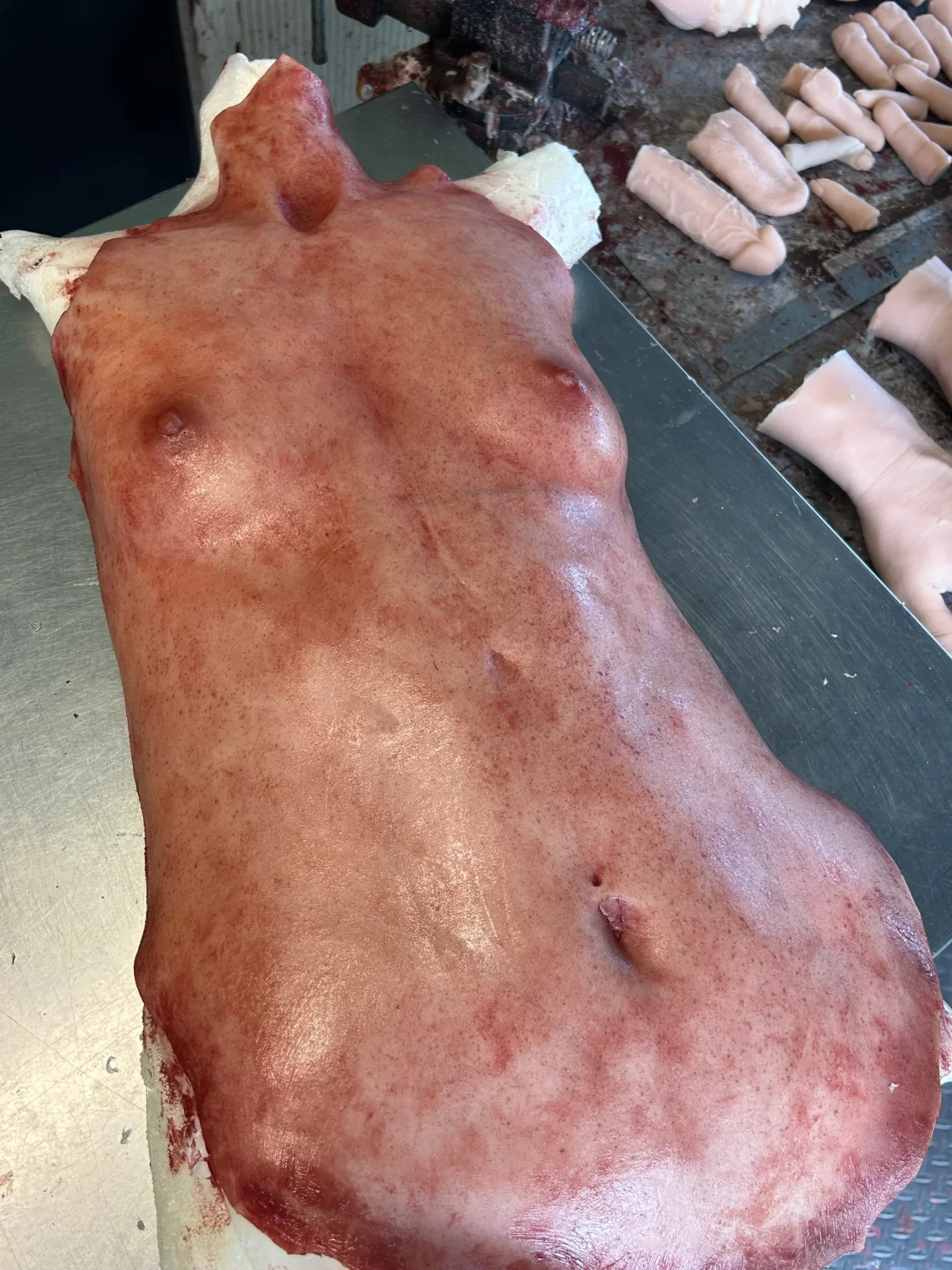 This silicone skinned female torso is movie quality and highly detailed. Each piece is individually made so each one is slightly different and unique.