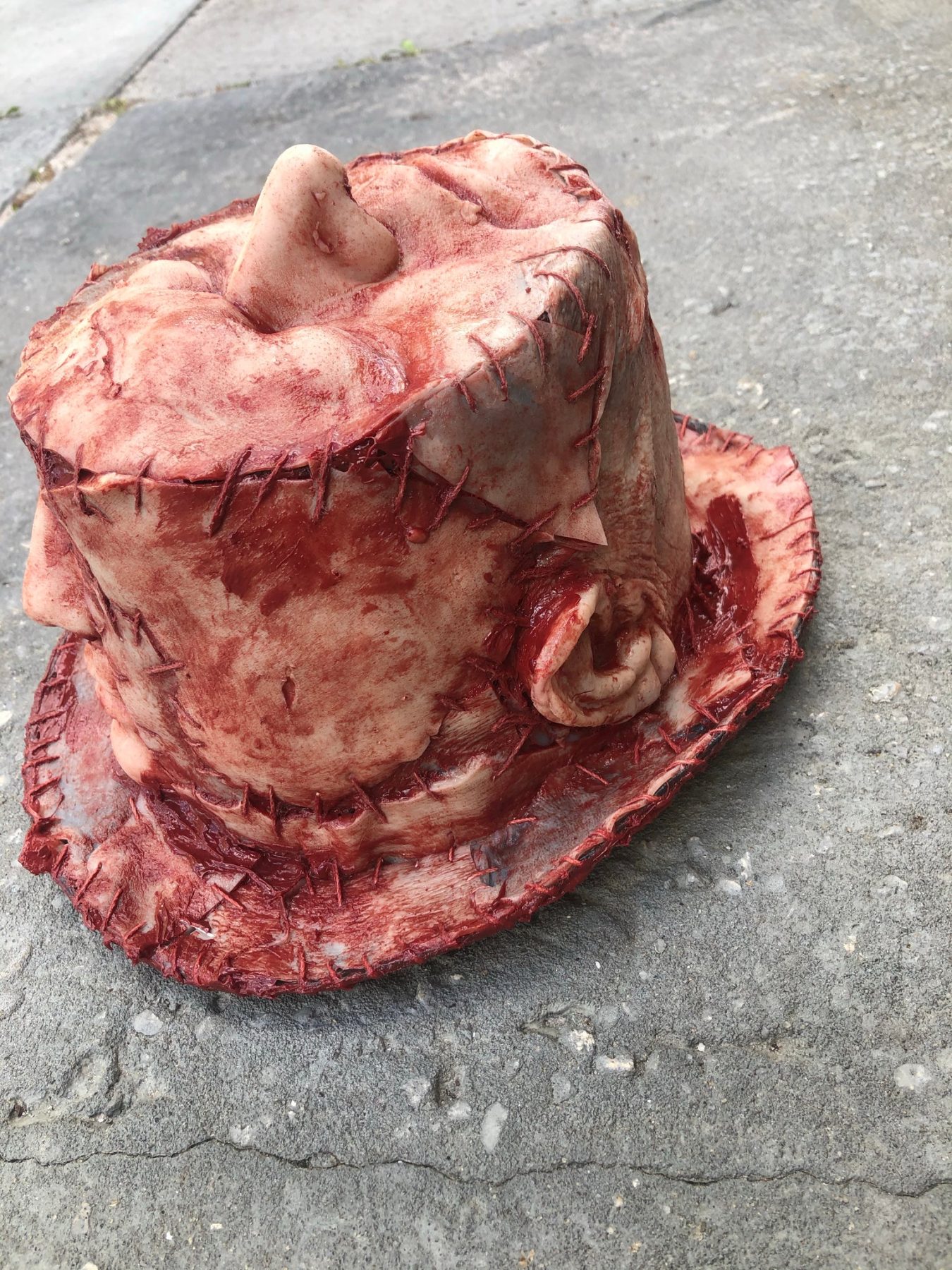 This unique top hat is skinned with silicone and fits most sizes. Individually made they are each unique and one of a kind. All made to order and production times are about 2 to 3 weeks.