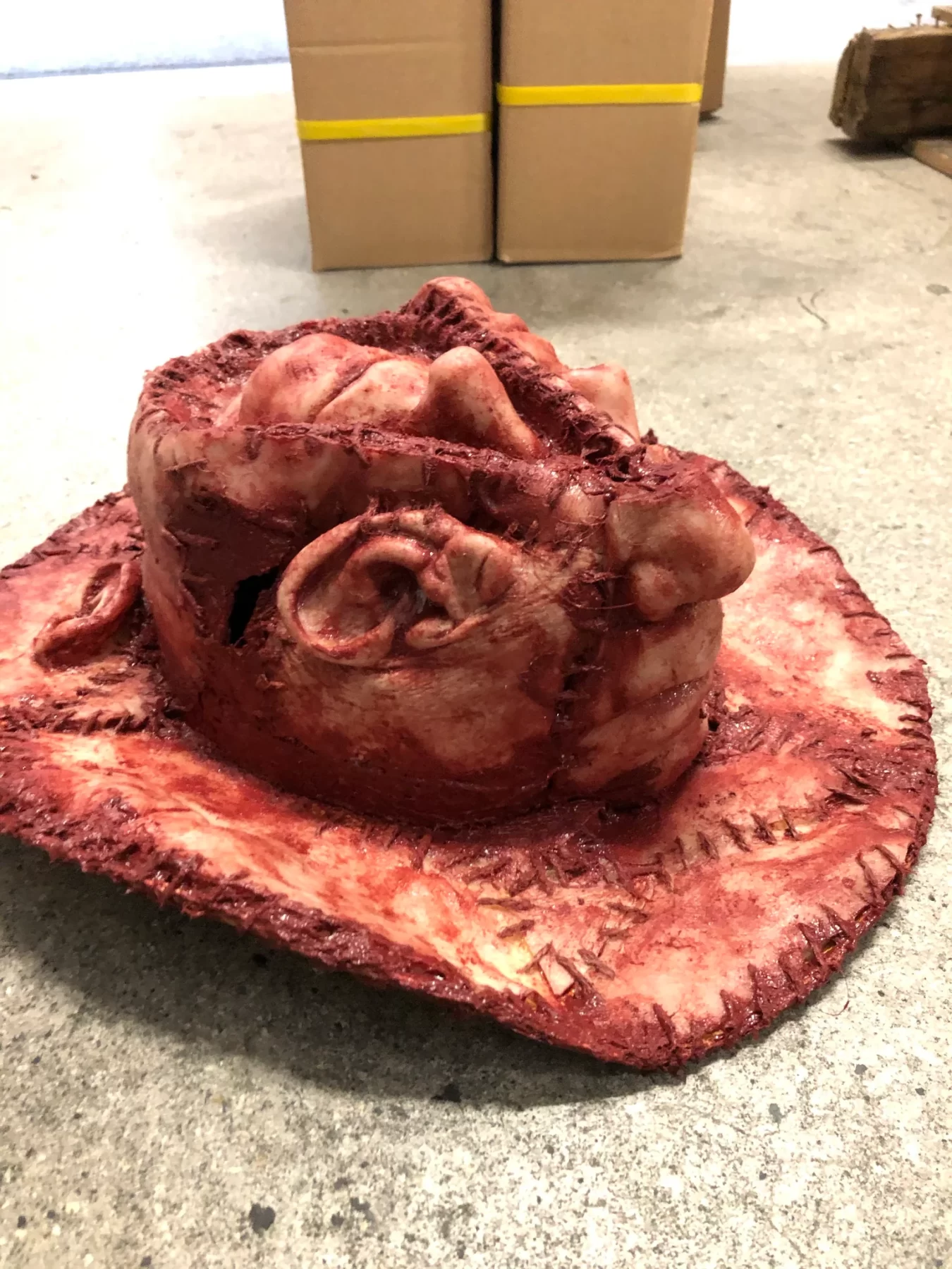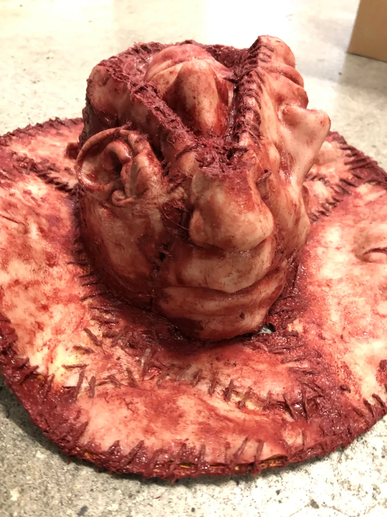 These hats are made to order, each one is made by hand and unique no two are identical though similar. Highly detailed and Film ready this hat is the perfect addition to your Halloween costume or cosplay character. The hats are pretty much one size fits all and constructed of silicone, completely water resistant and very durable. The production time for this item is about 2 to 3 weeks however these usually are shipped within 2 weeks after your order has been placed.