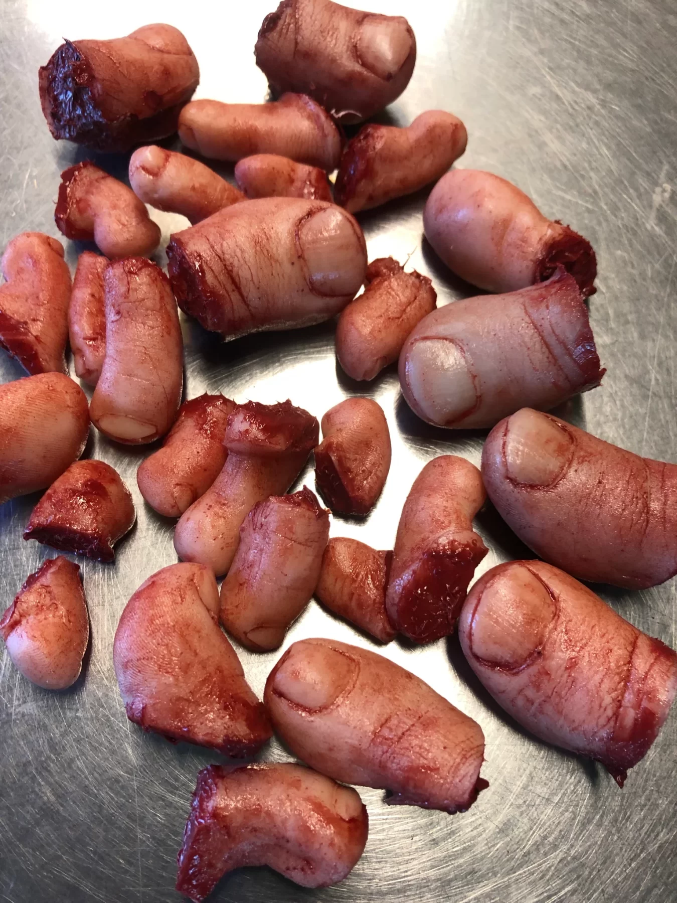 These severed silicone piggies are all individually painted and scared. This is a mix of female and male big toes and little toes lot comes with 20+ pieces.