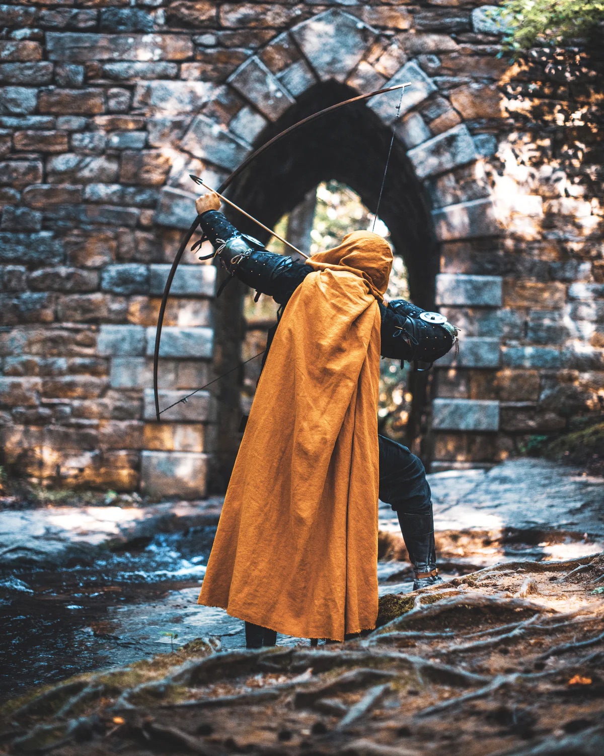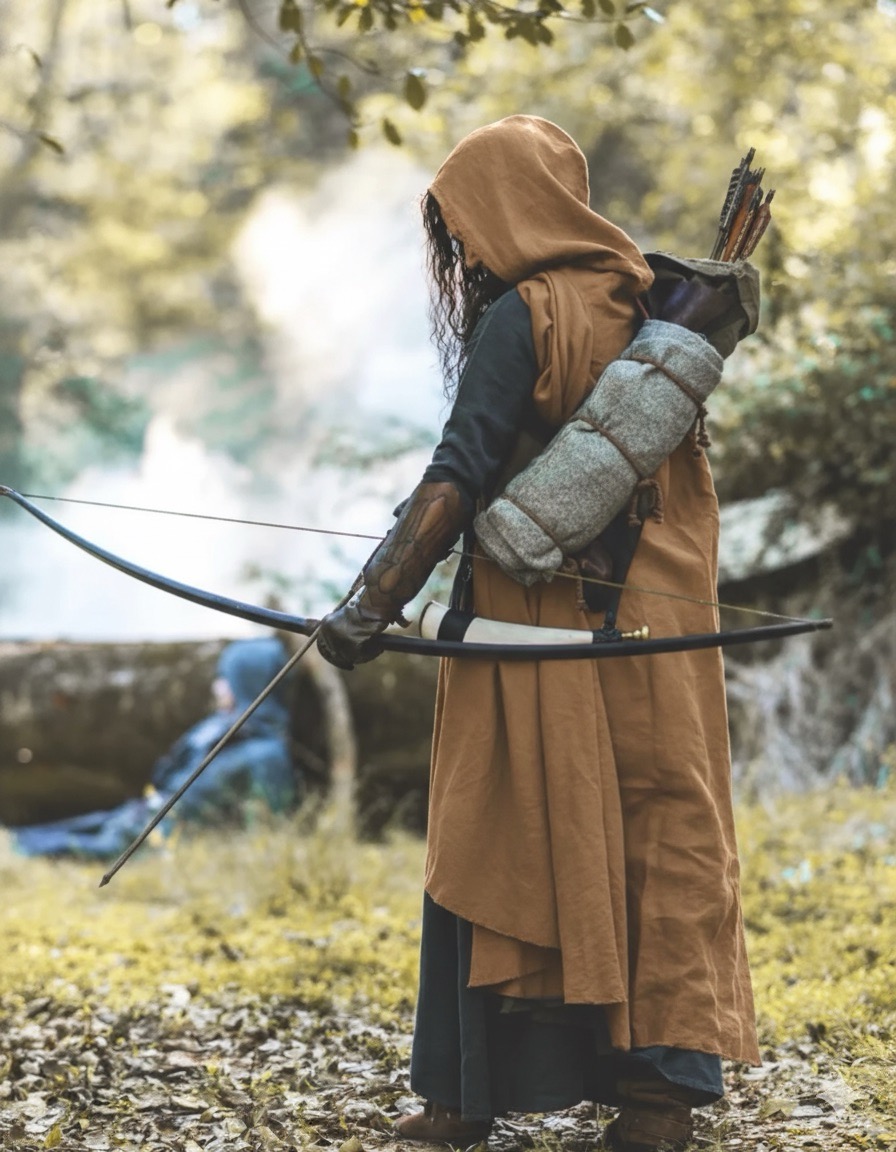 The perfect cloak for any ranger, huntsman, or assassin! Our ranger cloak is made to facilitate ease of movement as you adventure over hills and through the forest. And its color palate of dark, earthy tones can blend into the environment whether you’re hiding in the trees or in medieval city streets at night.