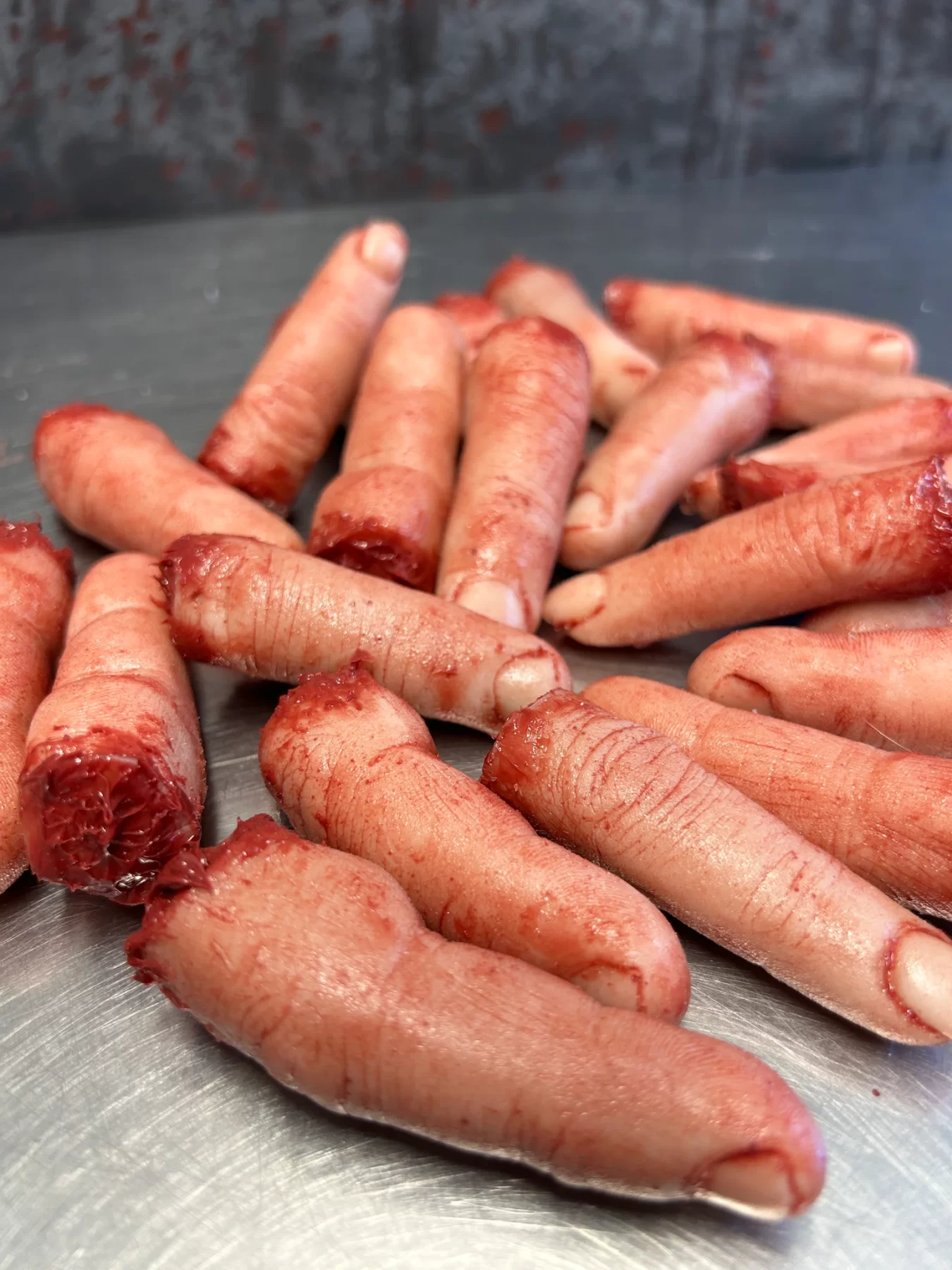 These silicone severed fingers are highly detailed and film quality. Fingers vary in shape, size, skin tone, and scarring to ensure that each is a one of a kind.