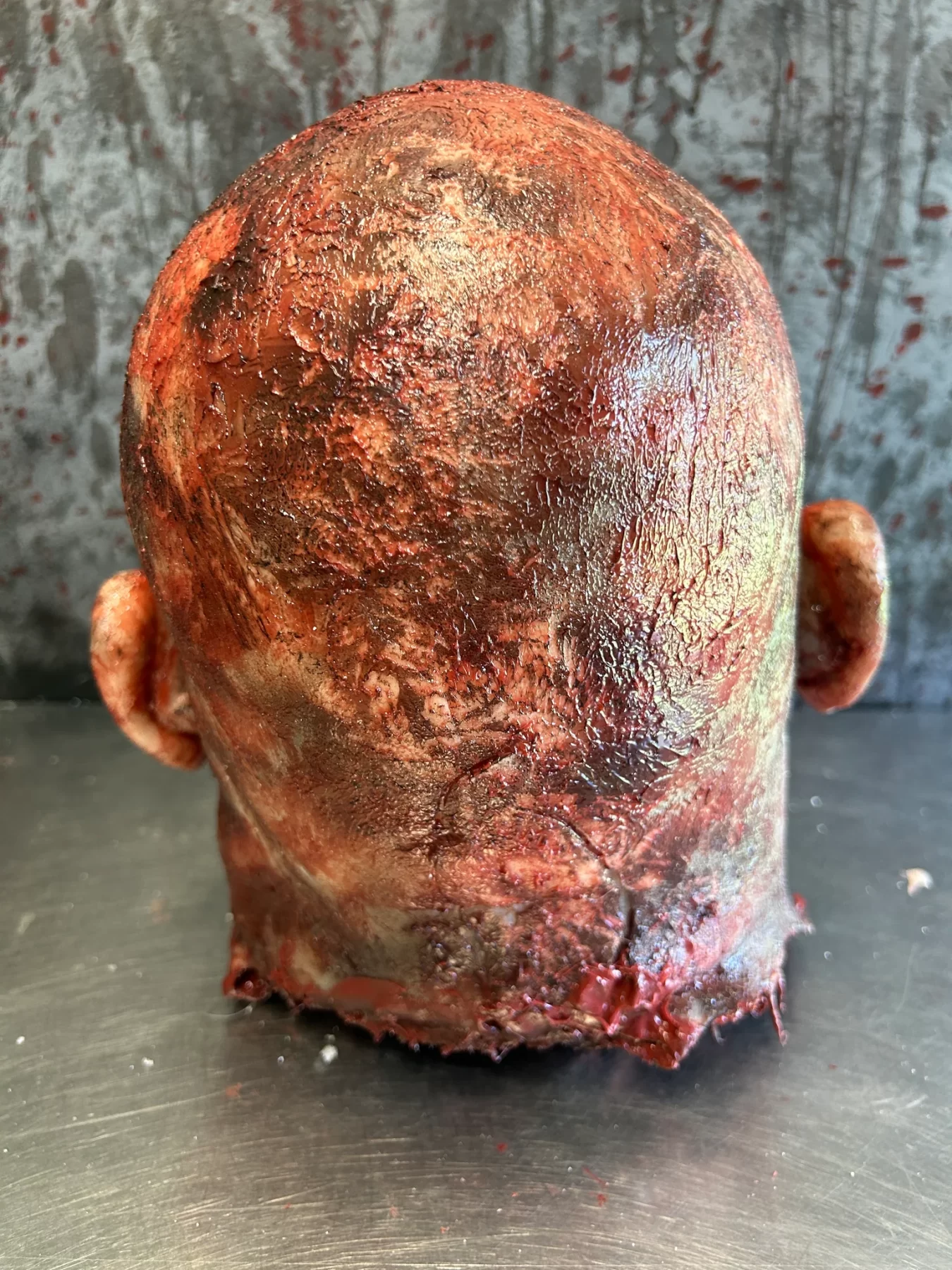 This severed head has a thick silicone skin and foam filled. Each one is individually made with unique skin tones, scarring, and blood splatter to ensure they are a “one of a kind.” Hand punched hair and other modifications are available at an additional cost. The price of these are based on the version in the pic. This is the perfect addition to your haunt, escape room, or collection of oddities.