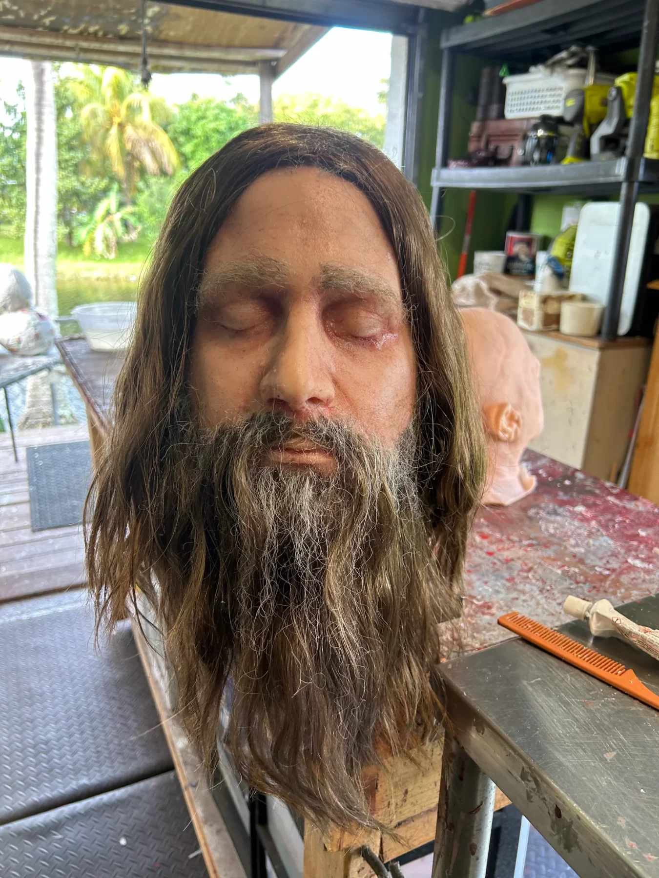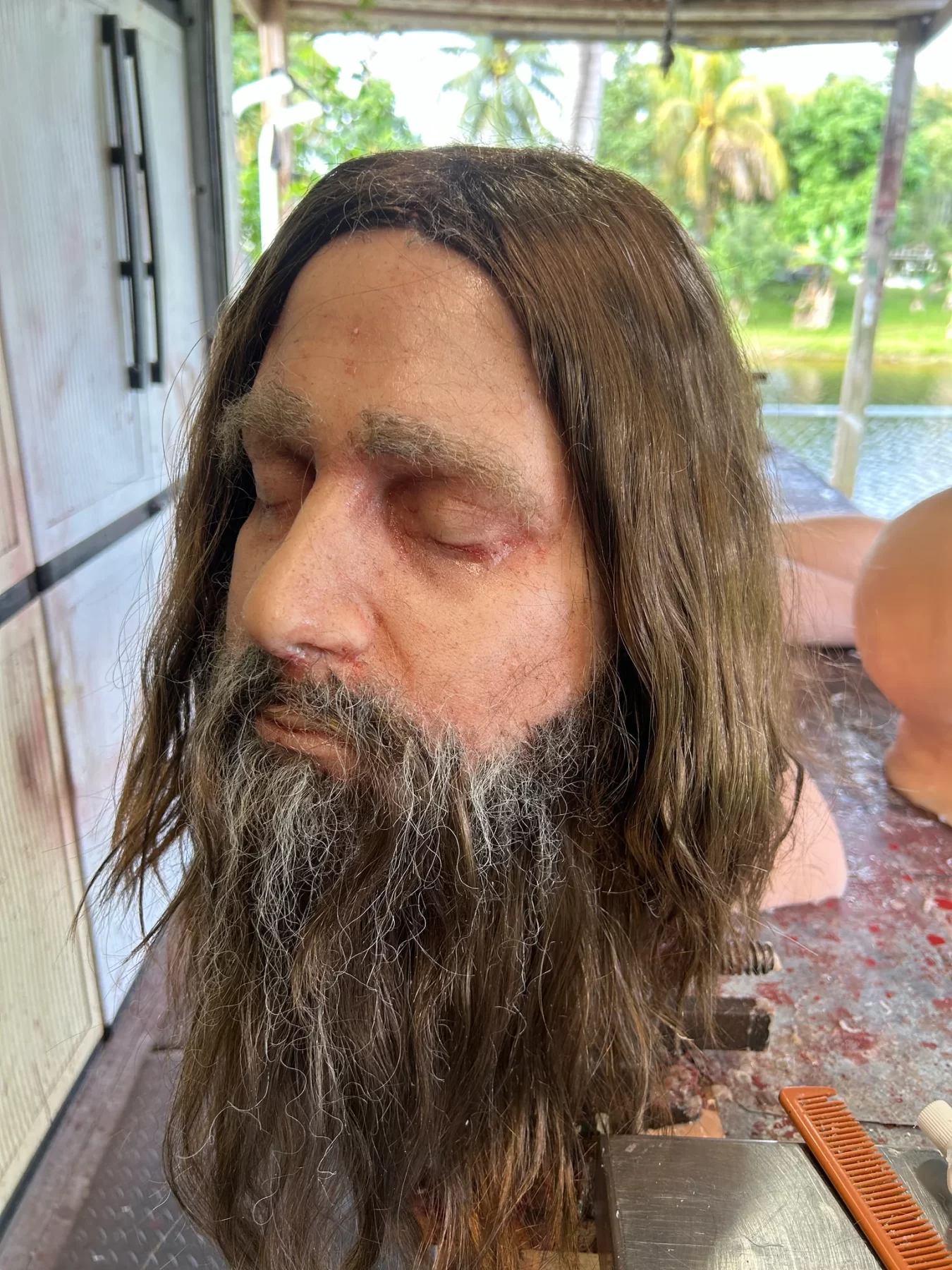 This silicone severed head is skinned with silicone and foam filled. The hair work can be customized per request, however if we don’t receive a request the head will be made similar to the listed pic.