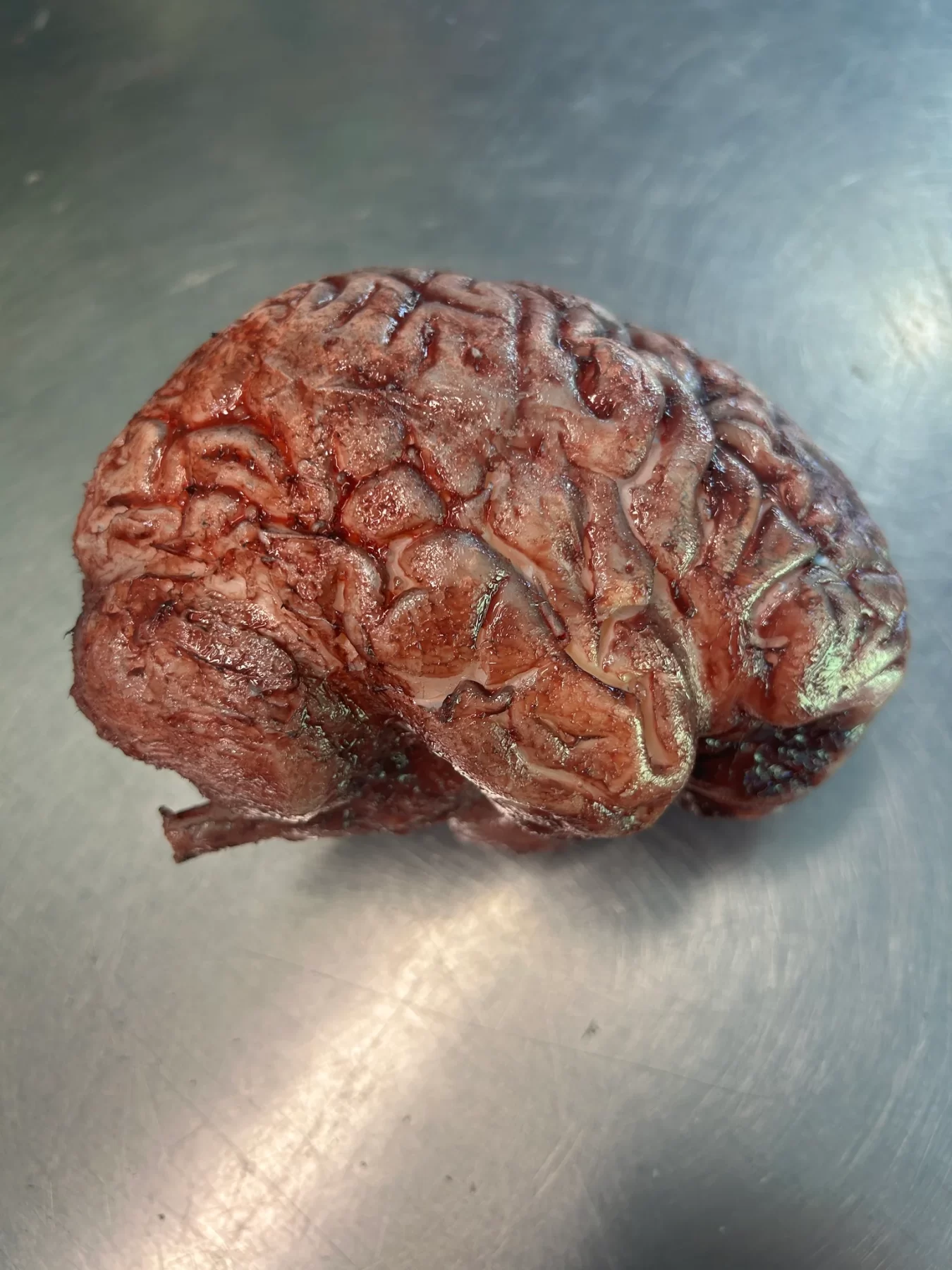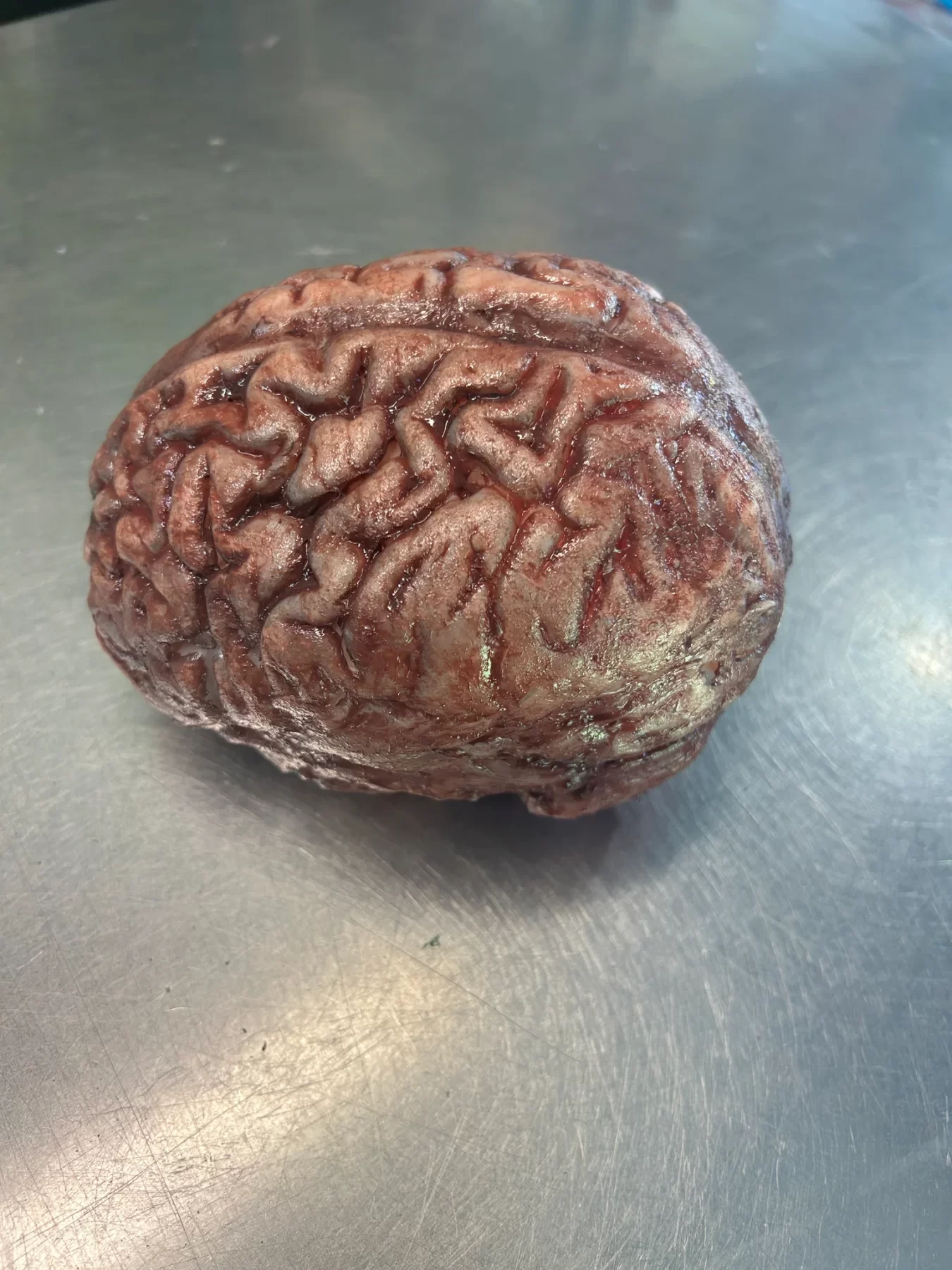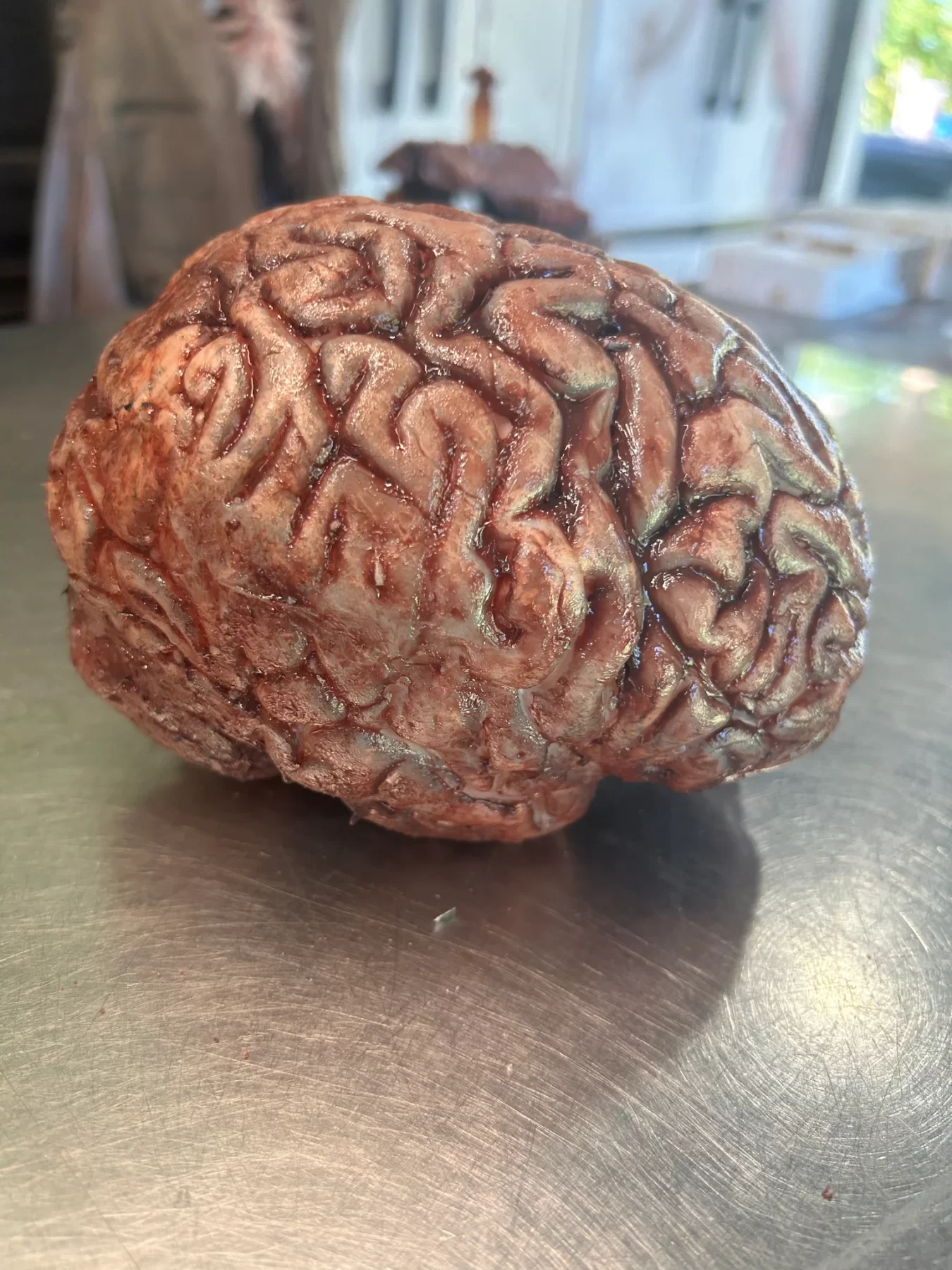 This life sized brain is skinned in silicone and foam filled. The perfect addition to your haunt set or film project. Please note that this prop is flat on the bottom with gore added and not anatomically correct on the bottom part, but a perfect stationary prop to add to your sets.