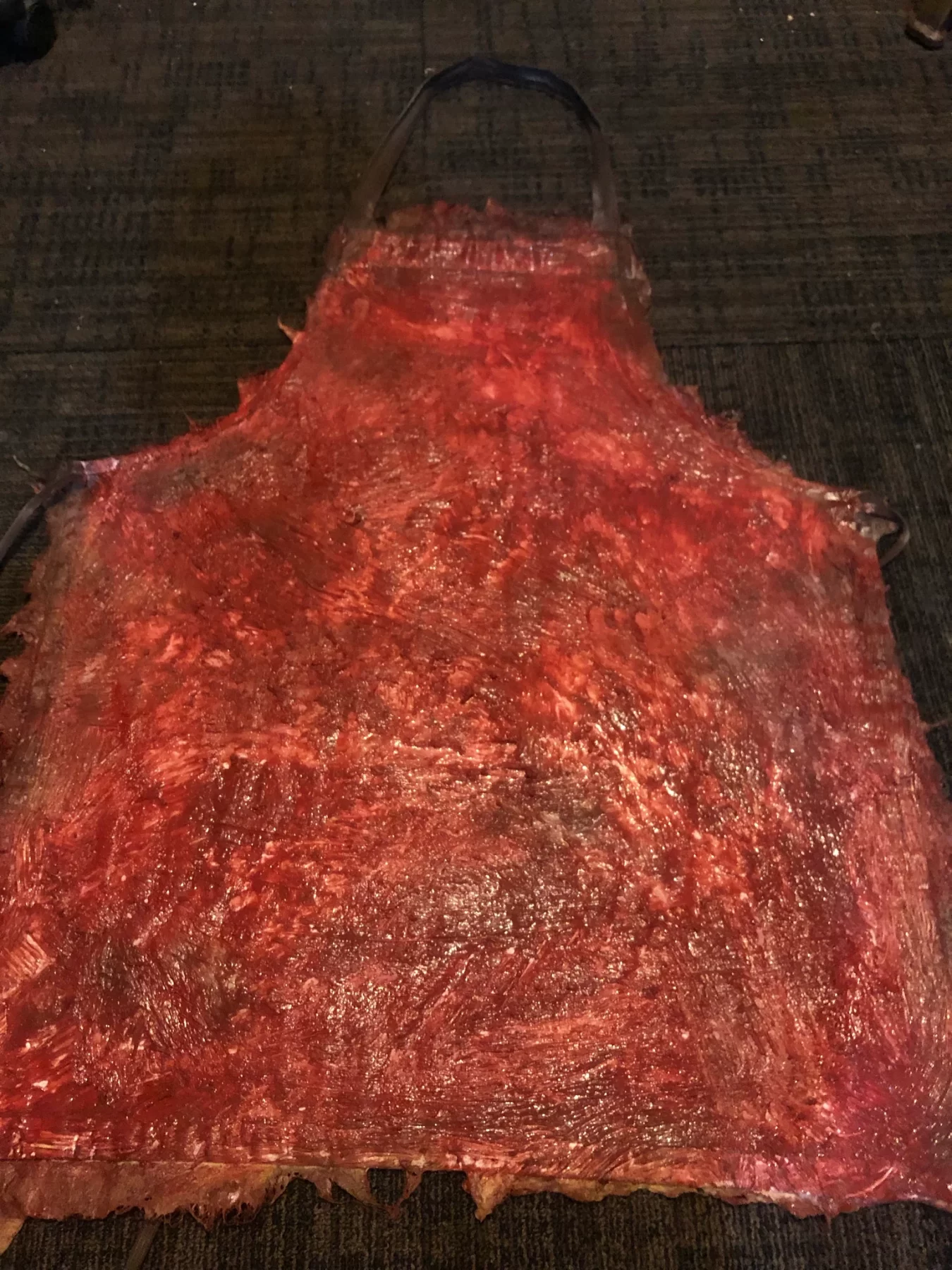 This skinned pig belly apron is the perfect addition to your cosplay or haunt character. Individually made so no two are exactly alike. This apron is reversible and can be worn either way depending on the look you’re going for. Please allow up to two weeks “usually quicker” for shipping once ordered. Skin side is latex, and the back side is silicone.